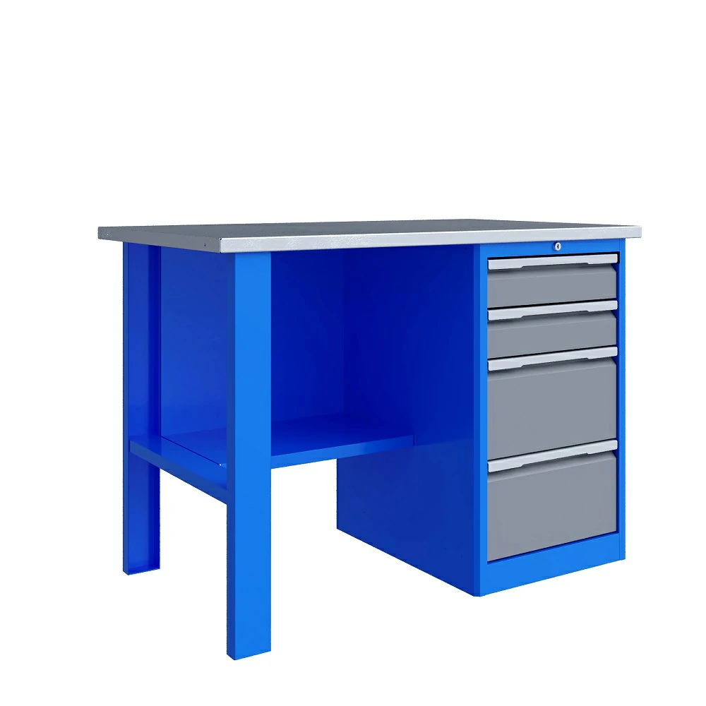 - Тумба верстака - сварная. Ящики в тумбе устанавливаются на шариковых телескопических направляющих полного выдвижения. В тумбе P4 установлено два малых и два больших ящика. Внутренние размеры малых ящиков (ВхШхГ), не более: 103 х 397 х 520 мм. Внутренние размеры больших ящиков (ВхШхГ), не более: 222 х 397 х 520 мм. Тумбы с ящиками снабжены общим центральным замком с поворотом ригеля 180 градусов и подпружиненной тягой. В комплекте два ключа