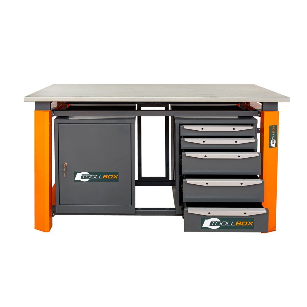 Двухтумбовый верстак ТВР1800 (ТВ0-ТВ5) надежен и удобен в использовании, отличается функциональностью и долговечностью. Верстак можно оборудовать с помощью разнообразных тумб, полок, лотков, ящиков и прочих необходимых для хранения инструментов.