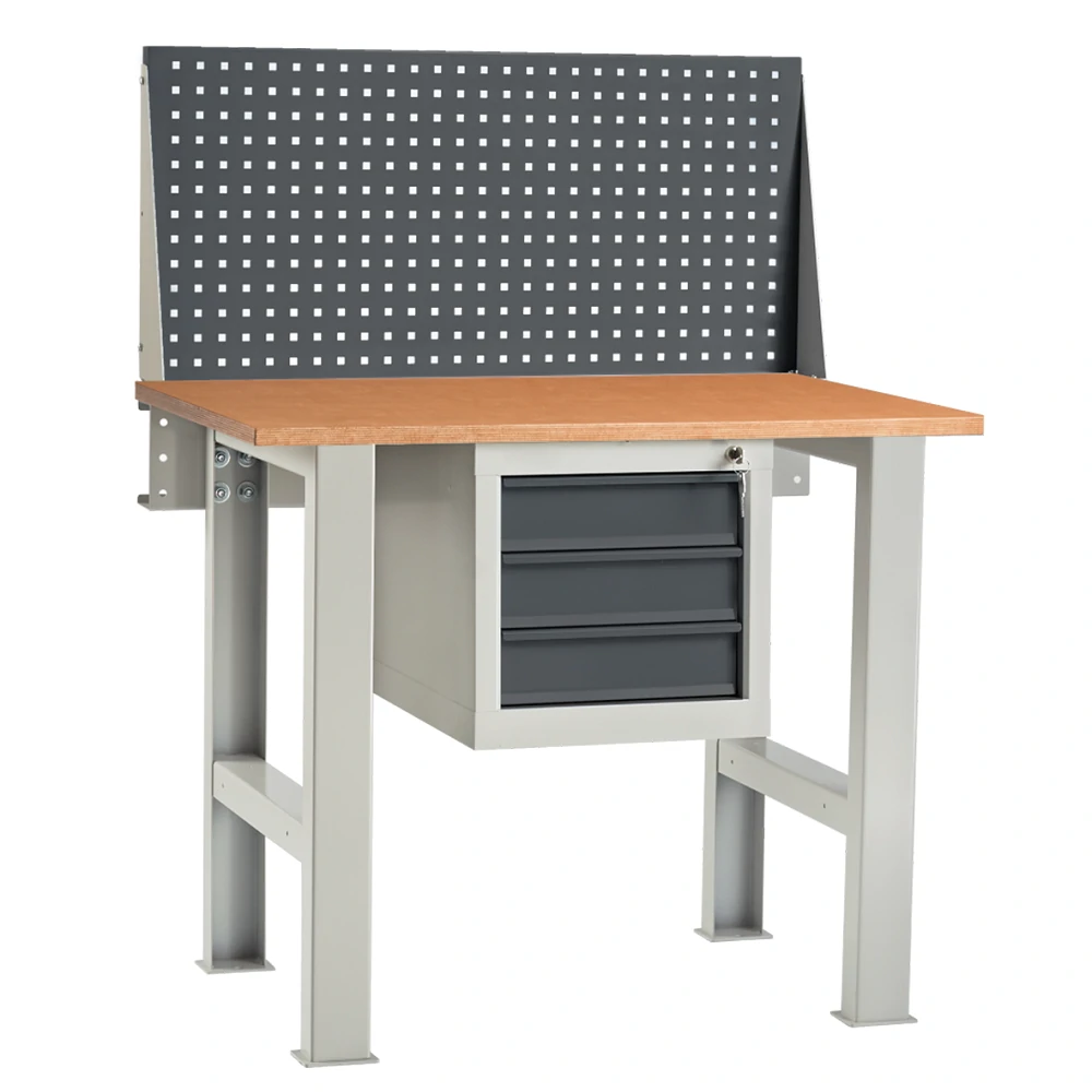- Металлические элементы верстака окрашены эпоксидной порошковой краской, устойчивой к механическим воздействиям и агрессивным жидкостям.
