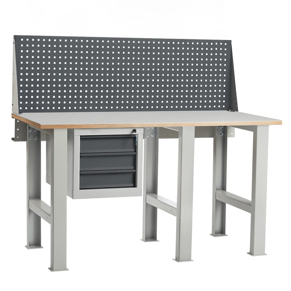 Верстак ВЛ-150-МФ-02+Э1 предназначен для слесарных работ на производстве, в гаражах и автомастерских, а также для промышленных предприятий среднего и тяжелого машиностроения. Все элементы сварные.