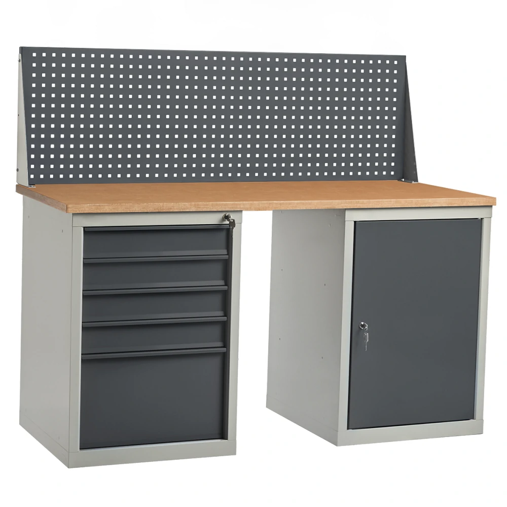 - Металлические элементы верстака окрашены эпоксидной порошковой краской, устойчивой к механическим воздействиям и агрессивным жидкостям.