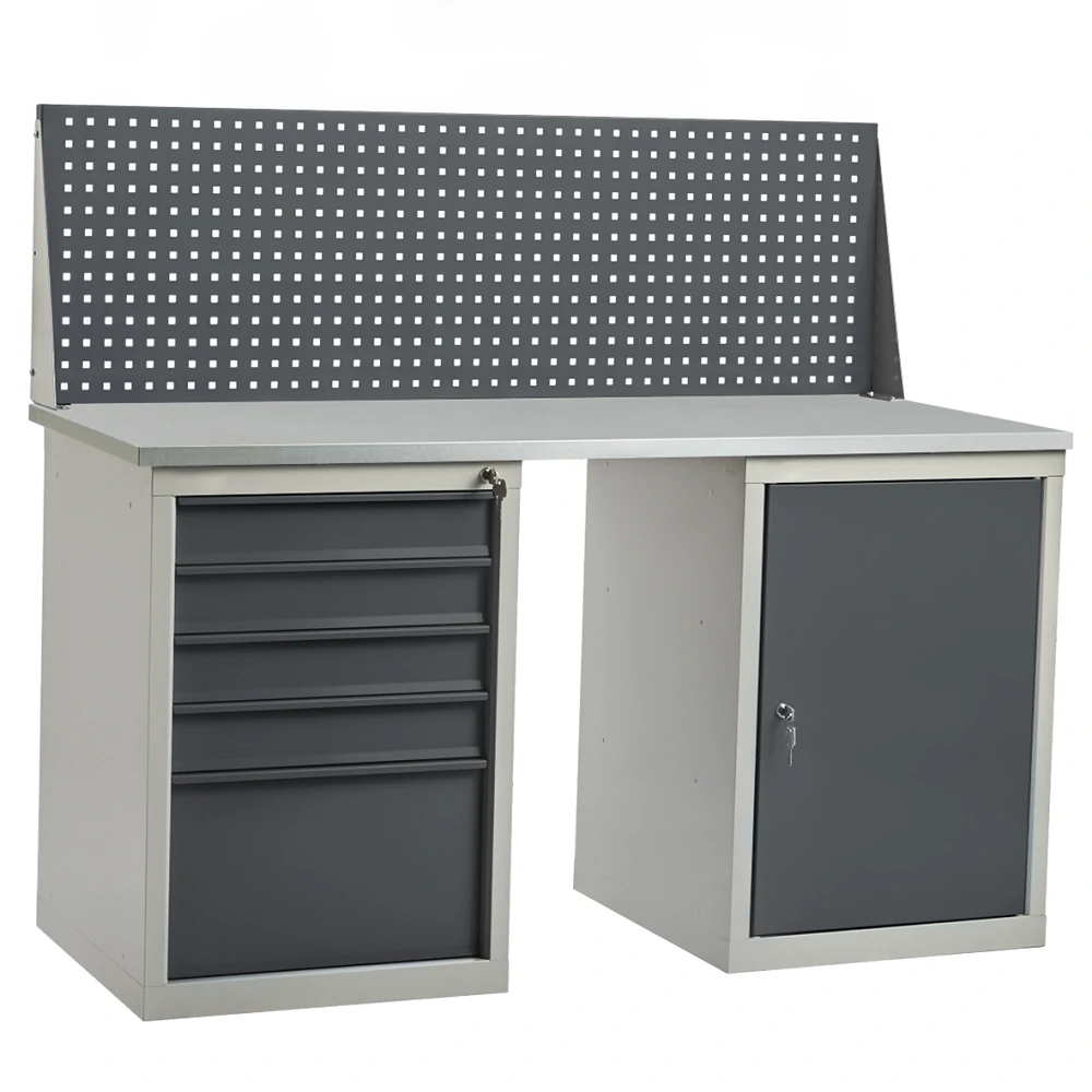 Верстак ВЛ-150-ЦФ-07+Э1 предназначен для слесарных работ на производстве, в гаражах и автомастерских, а также для промышленных предприятий среднего и тяжелого машиностроения. Все элементы сварные.