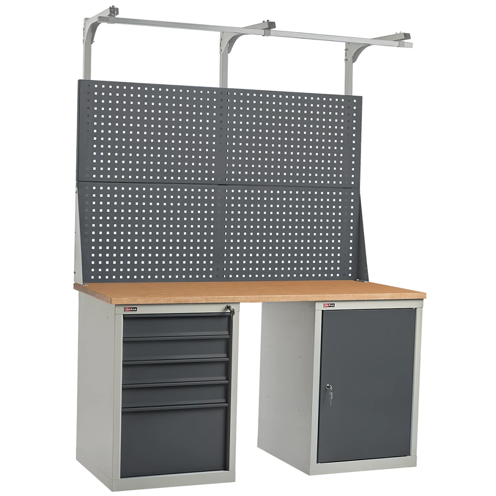 - Металлические элементы верстака окрашены эпоксидной порошковой краской, устойчивой к механическим воздействиям и агрессивным жидкостям,