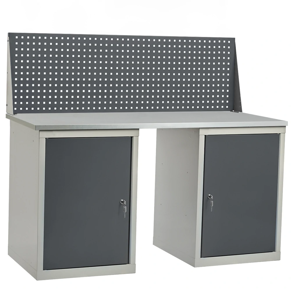 Верстак ВЛ-150-ЦФ-05+Э1 предназначен для слесарных работ на производстве, в гаражах и автомастерских, а также для промышленных предприятий среднего и тяжелого машиностроения. Все элементы сварные.
