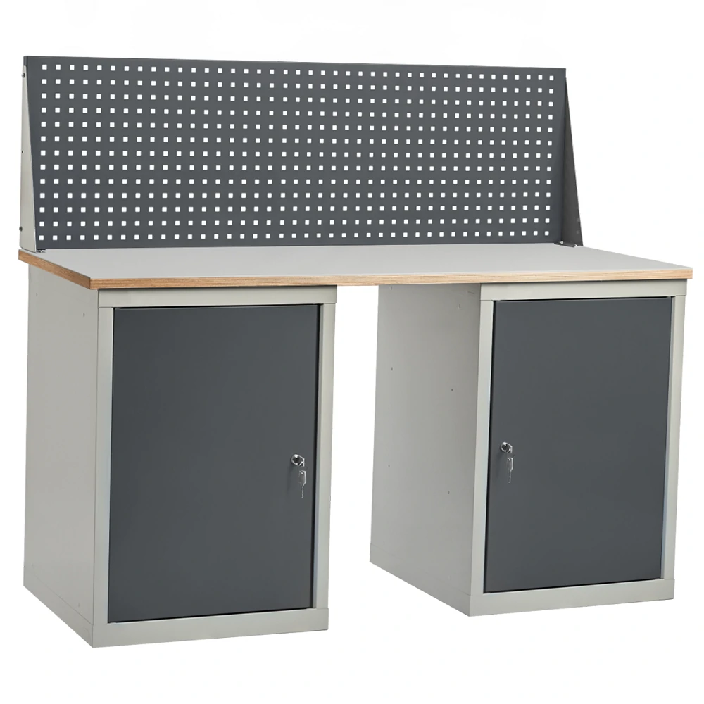 Верстак ВЛ-150-МФ-05+Э1 предназначен для слесарных работ на производстве, в гаражах и автомастерских, а также для промышленных предприятий среднего и тяжелого машиностроения. Все элементы сварные.