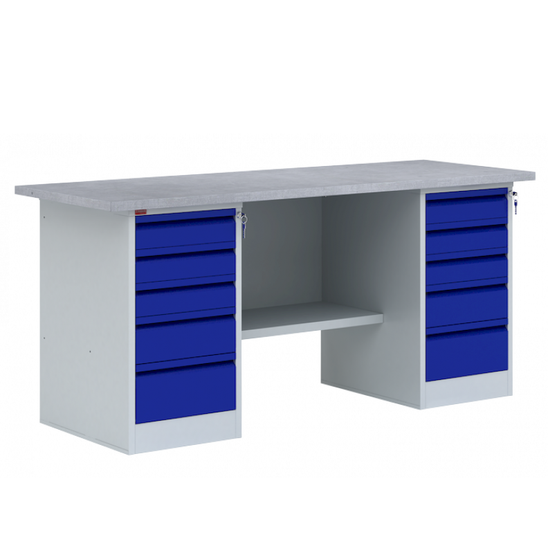 - две тумбы верстачные Т - 2 с пятью выдвижными ящиками (нагрузка 30 кг), запирающимися на общий замок,