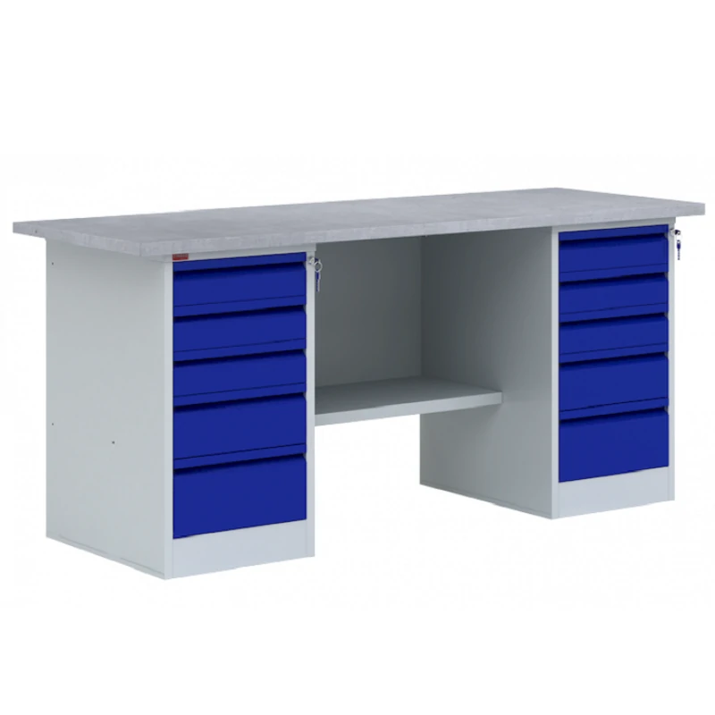 Верстак металлический, ВП-6Т длиной 1600 мм, с двумя тумбами ( драйверами) предназначен для проведения слесарных, сборочных, ремонтных и других работ на производствах, в гаражах и мастерских.