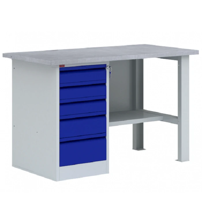 Верстак ВП-3Т, металлический, длиной 1200 мм, с одной тумбой (драйвером) предназначен для проведения слесарных, сборочных, ремонтных и других работ на производствах, в гаражах и мастерских