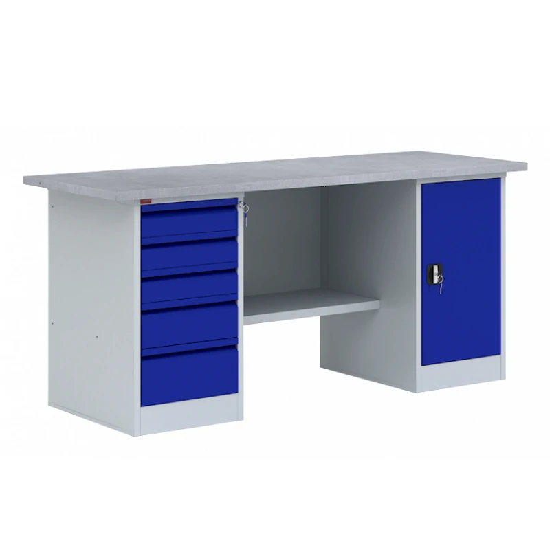 Верстак ВП-4Т, металлический, длиной 1600 мм, с двумя тумбами предназначен для проведения слесарных, сборочных, ремонтных и других работ на производствах, в гаражах и мастерских.