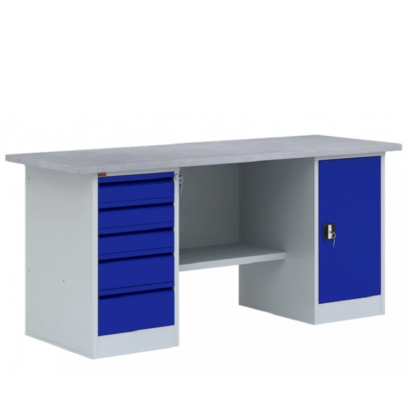 Верстак ВП - 4, двухтумбовый (с тумбой и драйвером) предназначен для проведения слесарных, сборочных, ремонтных и других работ на производствах, в гаражах и мастерских.