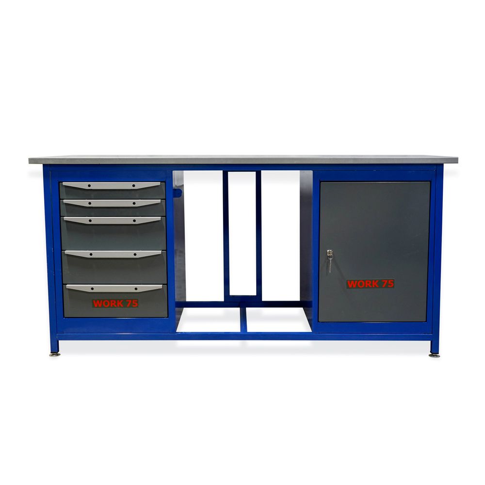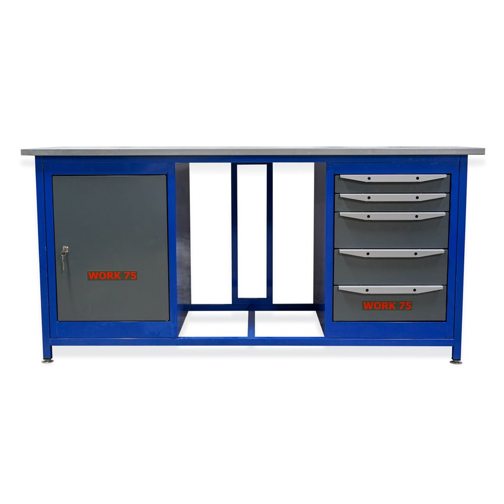 - Тумбы верстака Work WK1800 (Т0-Т5) комплектуются дверцей (запирается на почтовый замок) со съемной внутренней полкой, и пятью выдвижными ящиками двух типоразмеров по высоте.