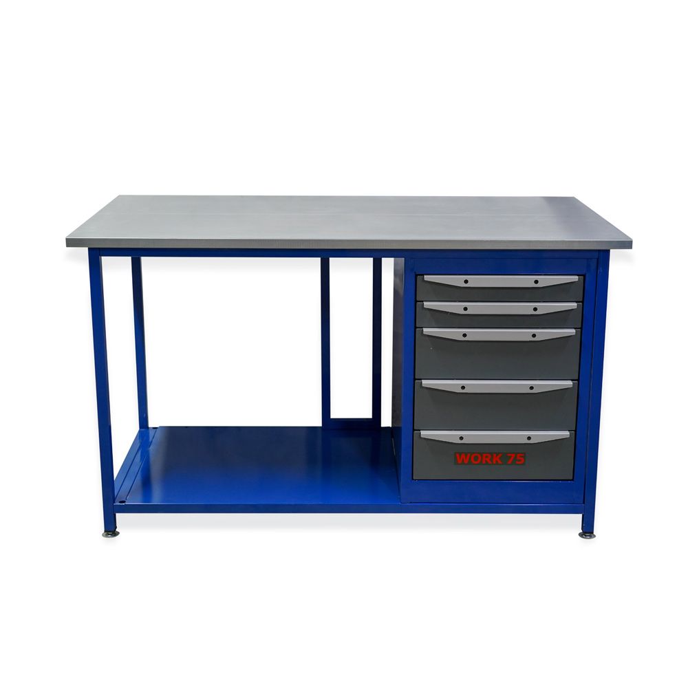 - Тумбы верстака Work WK1500(Т5) комплектуются пятью выдвижными ящиками двух типоразмеров по высоте.