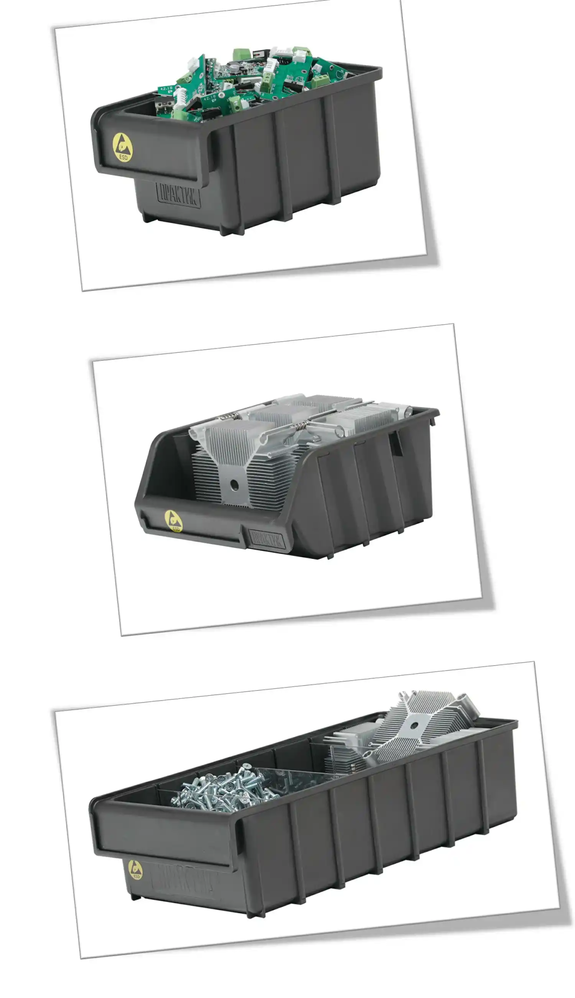 Ящики Практик ESD выполнены из антистатического пластика, предназначены для хранения метизов, крепежа, запчастей и других небольших грузов на предприятиях, складах, в мастерских и гаражах. Они помогают организовать рабочее пространство, повышают производительность труда и защищают чувствительные компоненты от статического электричества.