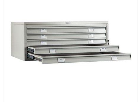 Картотека больших форматов. Предназначена для удобного хранения документов формата А1 (геологоразведочные карты, планы и конструкторские чертежи), дополнительно можно установить разделители под формат А2, А3, А4 (опция). Технические характеристики: