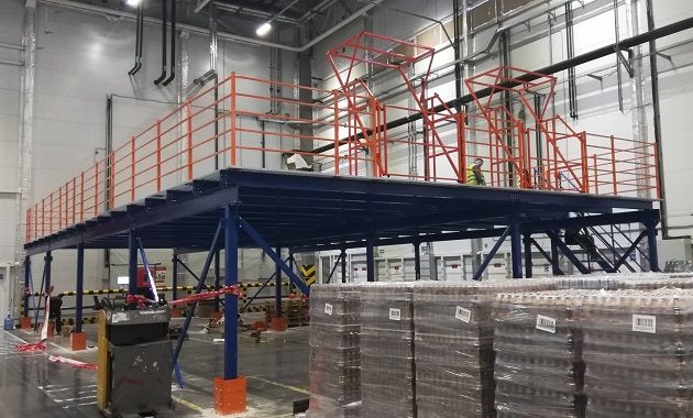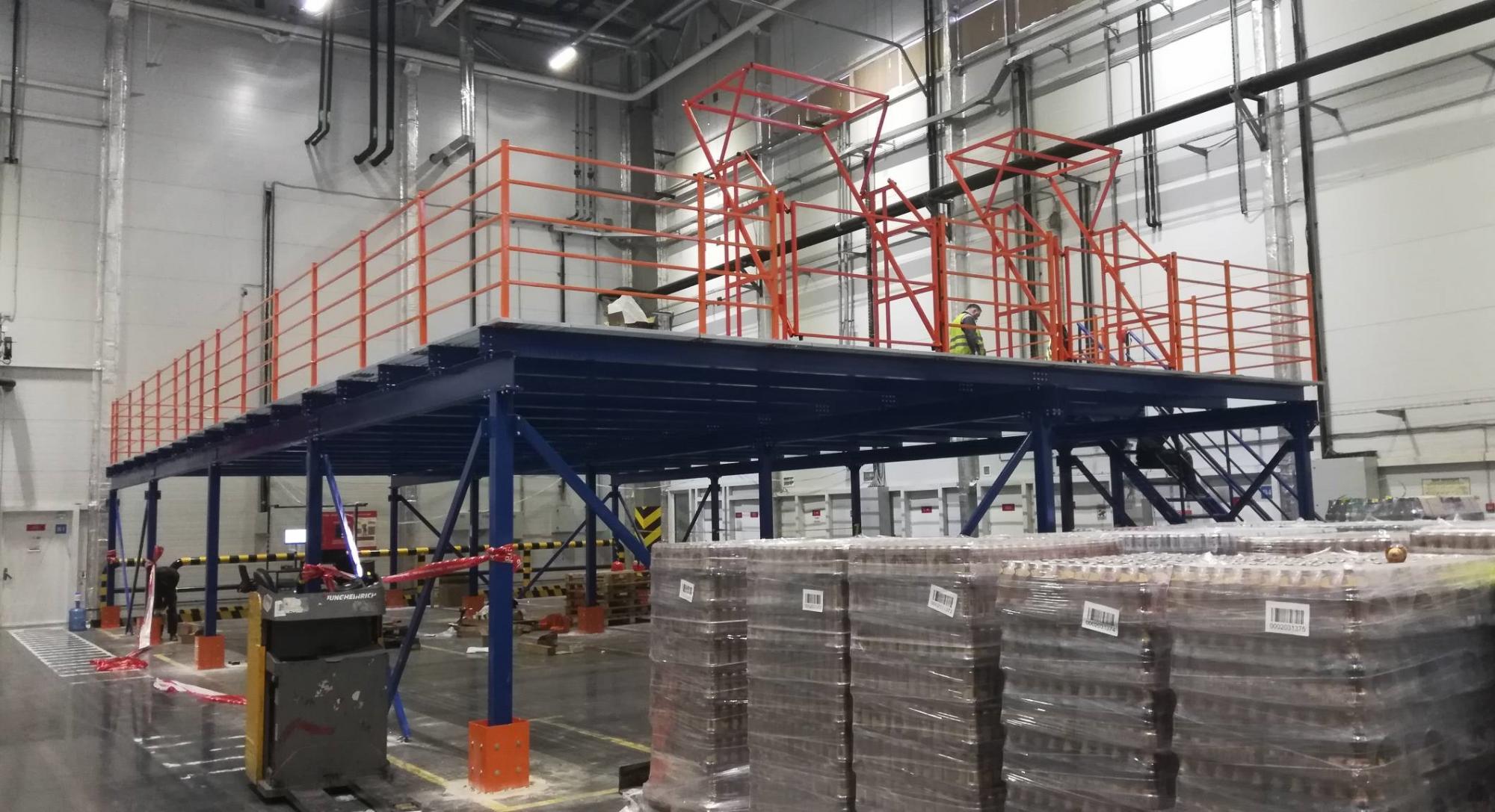 Мезонин на колоннах от компании Абсолют – вид складского оборудования представляющий собой отдельно стоящую платформу, которая состоит из сетки колонн, связанных горизонтальными балками, на которые укладывается настил (пол).