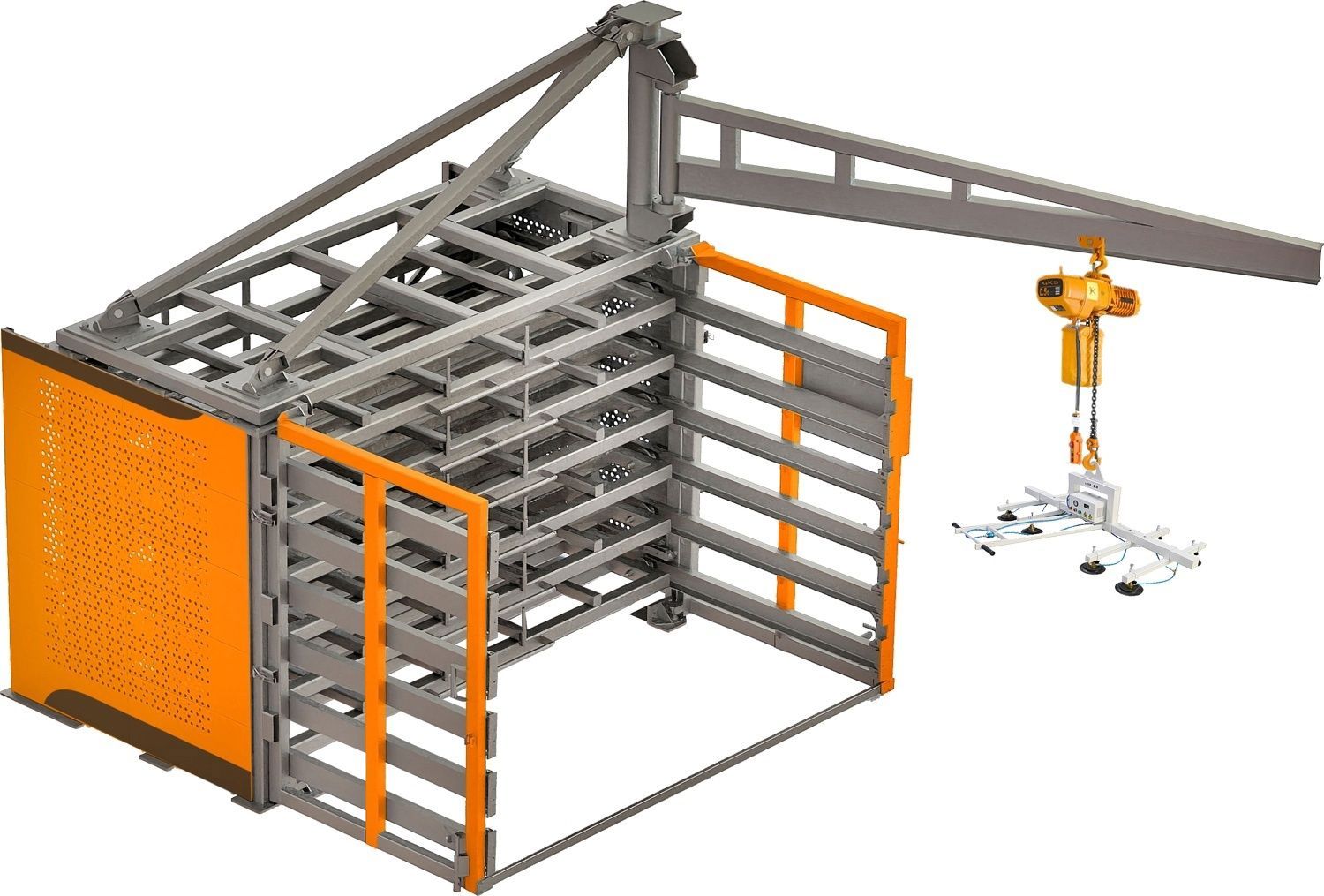 - Ускоряют процессы перемещения металла с помощью консольного крана и вакуумного захвата, которые обеспечивают автоматическую подачу листа на станок;